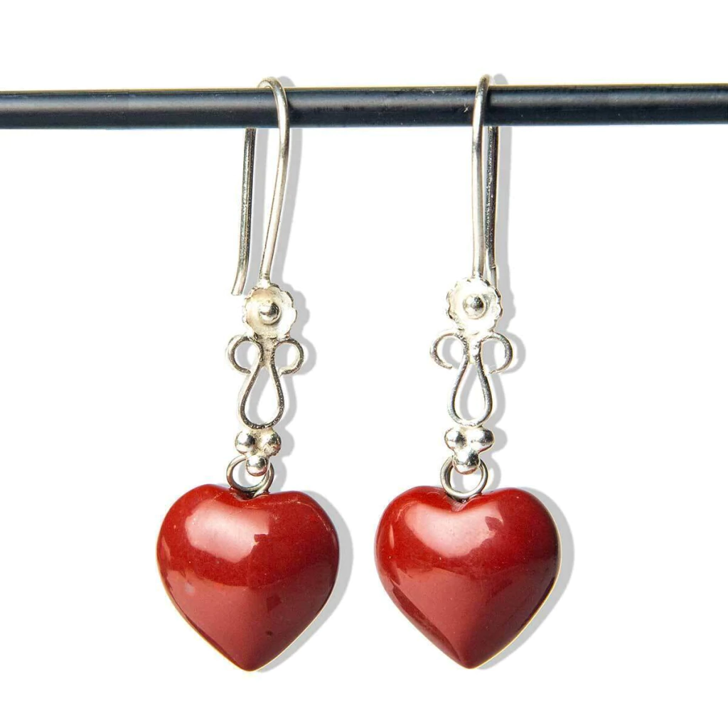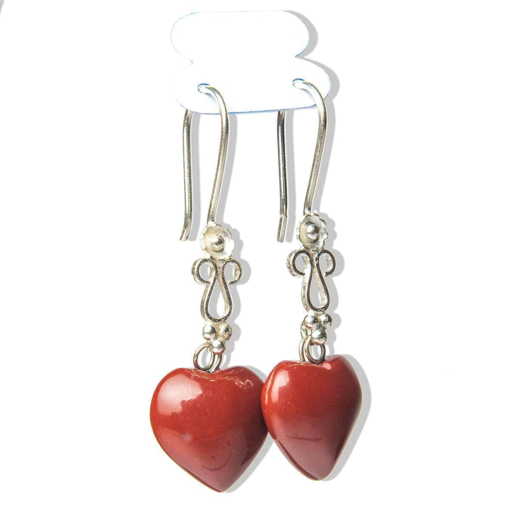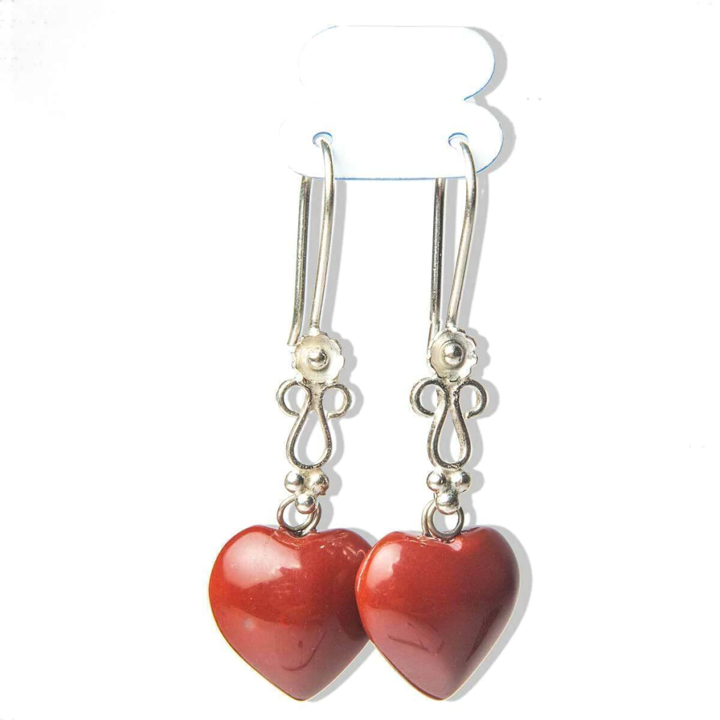Brinco NLux: Brinco Anzol Coração Jaspe Vermelho Natural em Prata 950. Elegância e estilo em uma só peça. Aproveite e compre já o seu!
