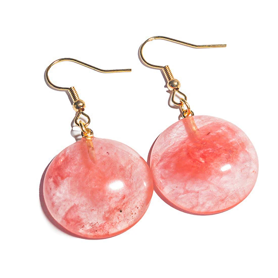 Transforme seu visual com o Brinco Cabochão Disco de Quartzo Cherry. Compre agora e adicione um toque de cor e elegância à sua coleção!