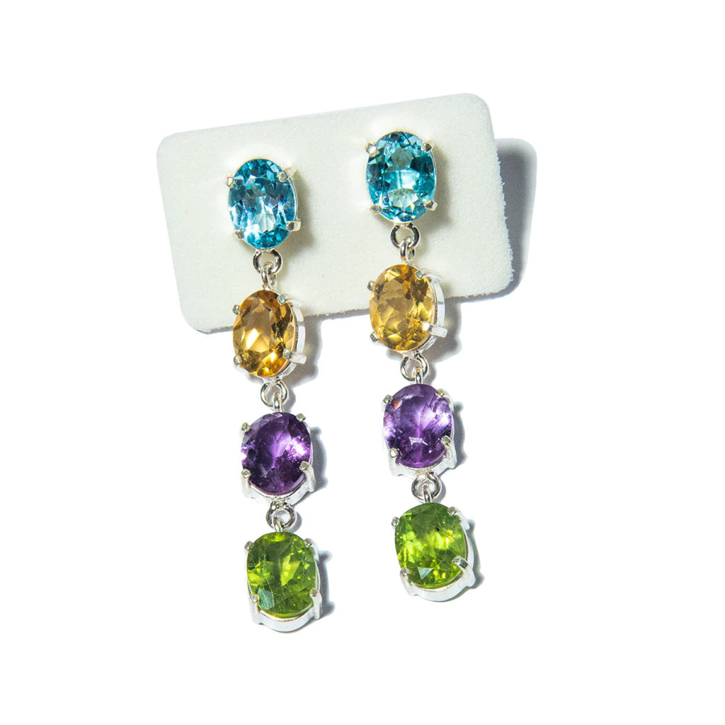 Celebre a energia e a beleza das estações com o Brinco Gemas de Verão em Prata 950, uma peça sofisticada que reúne o brilho e a leveza de pedras naturais como Topázio Azul, Citrino Dourado, Ametista Violeta e Peridoto Verde. Cada pedra representa uma vibração única, trazendo vida, cor e equilíbrio ao seu estilo.