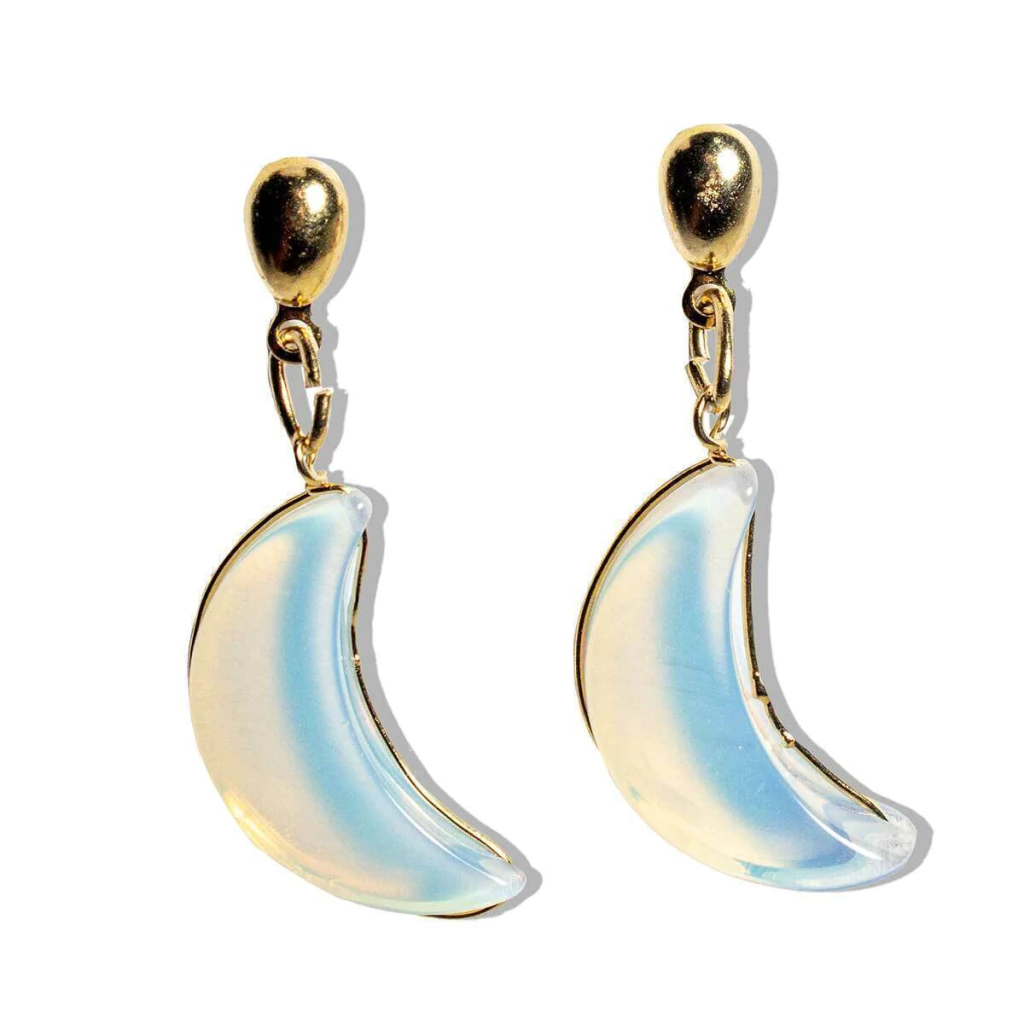 Realce seu estilo com o brilho encantador do Brinco Meia Lua com Pedra da Lua Opalina. Adquira já e transforme seu visual!