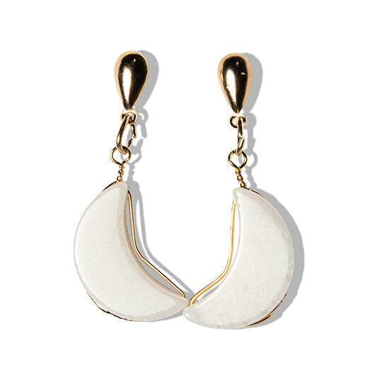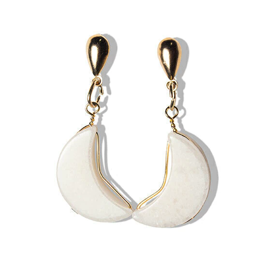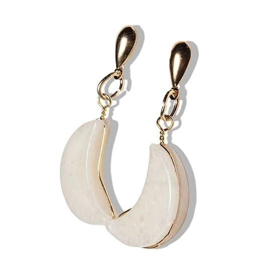 Brinco de Feldspato Branco Lapidado em Meia Lua: Sofisticação e Energia em Uma Joia Artesanal