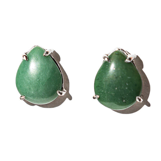 Brinco Topinho Pedra Quartzo Verde Natural Gota 10mm Lisa montado na Garra Prata 950, Pedra Quartzo Natural de Boa Qualidade mineral não é pedra de laboratório como esta cheio o mercado, a montagem Prata 950 com garras para segurar a Gema. Lapidação da Pedra em formato de Gota com Acabamento Liso e Base reta.