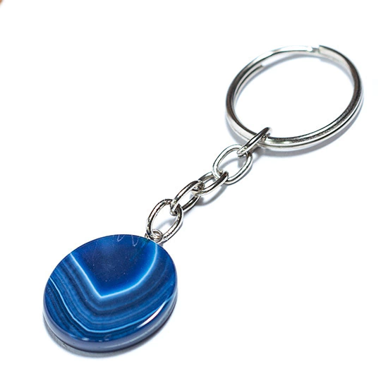 Chaveiro Disco Agata Azul 24mm Pedra Natural de Garimpo Prateado, Chaveiro Disco 24mm Agata Azul, a montagem consiste em: Argola para chaveiro + Corrente Prateada + Disco de Agata Pedra natural de garimpo assim você tem um poderoso talismã ideal para o seu dia a dia