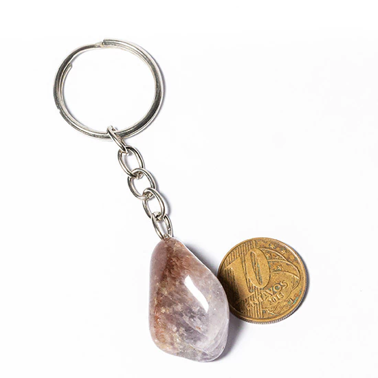 MONTAGEM DAS PEDRAS: Argola de Chaveiro + Corrente Banho Prata + Pedra Quartzo Rosa Rolada