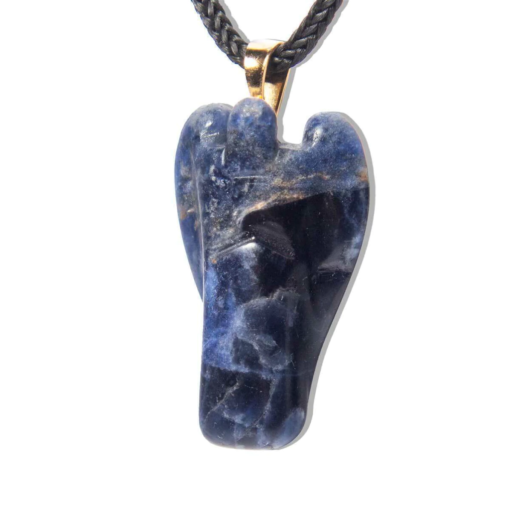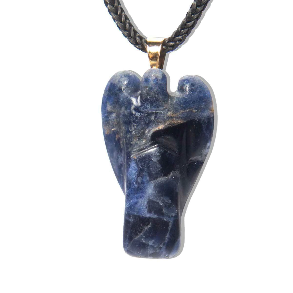 Colar de Anjo Pedra Sodalita, delicado e elegante. Acompanha você em todos os momentos do dia.
