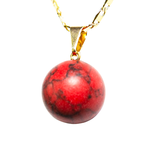 Pingente Esfera Howlita Vermelha natural mineral verdadeiro de garimpo excelente preço lapidação Esfera montagem com pino e perinha Dourado, recomendado para pulseiras, colares ou crianças