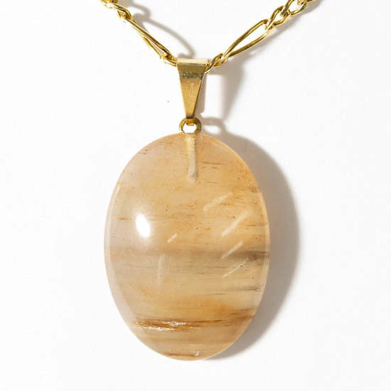 Pingente Cabochão pedra Cristal de quartzo com finissimos fios de rutilo alaranjado Pedra origem de garimpo com lapidação e montagem manual pino e presilha Banho Dourado