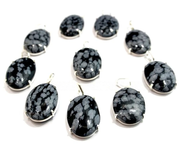 Pingente Cabochão Oval Liso Pedra Obsidiana Flocos de Neve Montagem na garra com perinha em Prata 950 para passar o cordão Pedra Genuina com origem garimpo lapidação e montagem manual