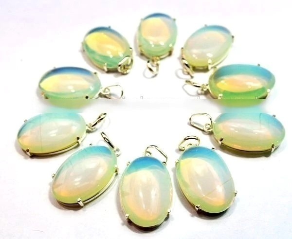 Pingente Cabochão Oval Liso Pedra Lua Opalina Montagem na garra com perinha em Prata 950 para passar o cordão Pedra com lapidação e montagem manual
