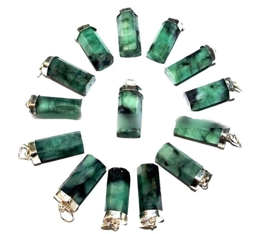 Pingente CANUDO DE ESMERALDA Pedra Lapidada montado em Prata 950 a montagem é feita envolto da peça com prata de lei suave não machuca quando estiver usando.