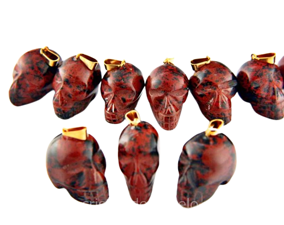 Pingente Cranio Pedra Obsidiana Mahogany mineral natural verdadeiro de garimpo esculpido uma mini caveira excelente preço lapidação montagem com pino e perinha envolto prateado