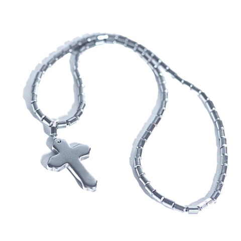 O colar de crucifixo em hematita rolada é uma peça elegante e protetora, que transmite força e estabilidade. Use o amuleto em seu dia a dia.