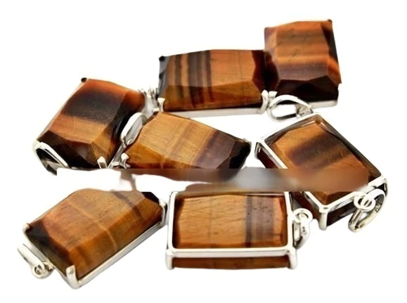 Pingente Olho de Tigre lapidado Facetado Prata 950 Montado manual por joalheria conveniada onde garantimos a qualidade da prata castoação caixinha com Garras Reforçado de Prata, com Pedra natural, ideal para colocar no seu colar ou cordão de prata.