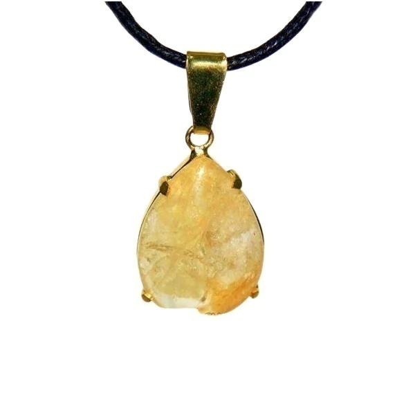 Cordão ou Colar Fio Encerado com Pingente Gota Citrino Bombardeado na Garra, montagem dourada banho flash douradoCordão de 50cm já pronto com fecho boia dourado para pingente Colar fio encerado + pingente gota na garra
