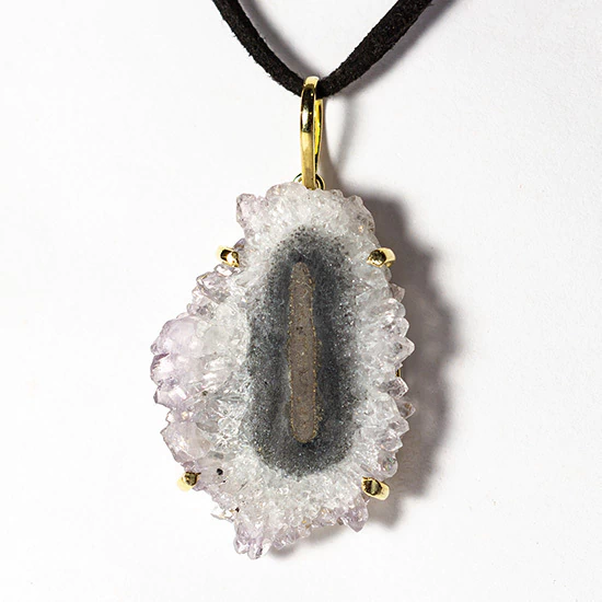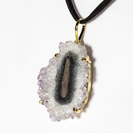 Encante-se com a magia do Colar Flor de Ametista. Sinta a energia da transformação e proteção desta pedra preciosa em seu dia a dia.