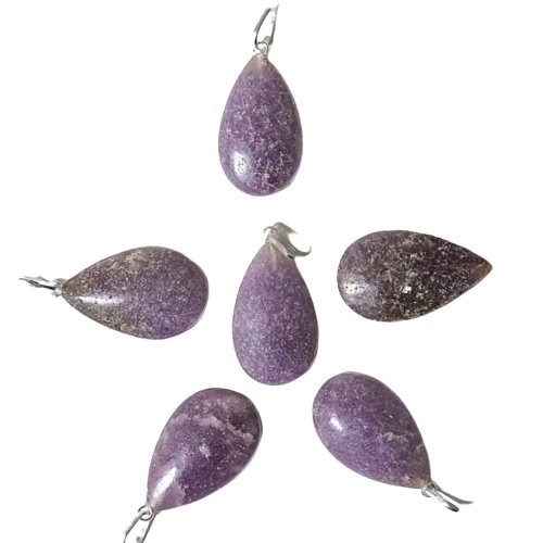 Pingente Gota pedra Lepidolita Mica Natural Montagem com Pino e Presilha de Prata 950 ( PRATA DE LEI)