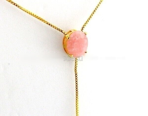 Colar Gravata Gema Oval Facetado Pedra Quartzo Rosa de garimpo natural lapidado oval Facetado feito manualmente e com excelente brilho, montagem feito com banho dourado com fecho lagosta fácil de colocar e tirar
