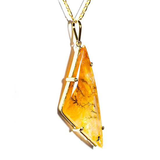 Pingente Hematoide Com Dendrita Grande Gota Garra Dourada, Pingente Cabochão Gota Grande Pedra Especial Hematoide com Inclusão dendrita Natural de Garimpo Rarissima com Montagem na garra dourado com perinha para passar o cordão Pedra Genuina com origem garimpo lapidação e montagem manual