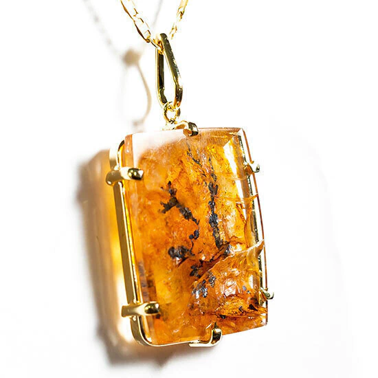 Pingente Hematoide Com Dendrita Retangulo Garra Dourada , Pingente Retangulo Grande Pedra Especial Hematoide com Inclusão dendrita Natural de Garimpo Rarissima com Montagem na garra dourado com perinha para passar o cordão Pedra Genuina com origem garimpo lapidação e montagem manual