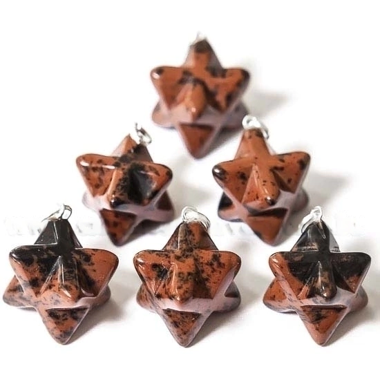 Pingnete Merkabah pedra Obsidiana Mahogany montagem Prata 950, pedra natural de garimpo com excelente lapidação em formato estrela merkabah.