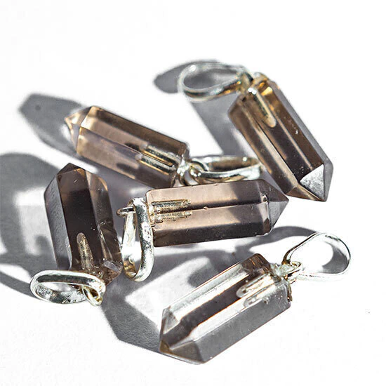 Colar pino prata 950 c/ micro pontinha quartzo fumê - energia positiva e elegância em um acessório único. Perfeito para qualquer ocasião.