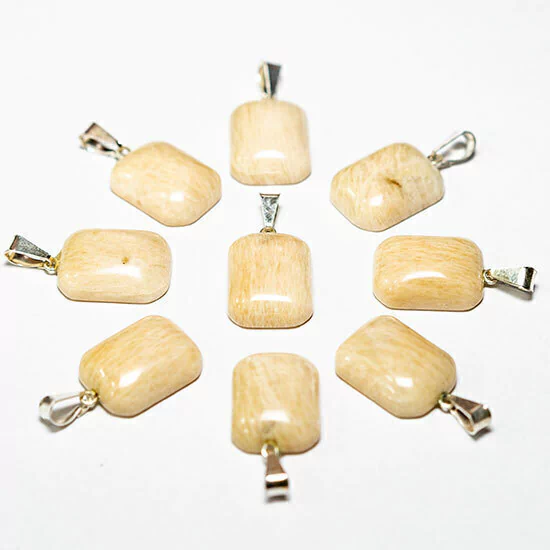 Mini Pingente Feldspato Branco Retangular 20mm Liso Natural Pino Prateado, Pingente Retangulo Montagem Prateado com pino e perinha para cordão, mineral de garimpo pedra com lapidação e montagem manual estilo artesanal