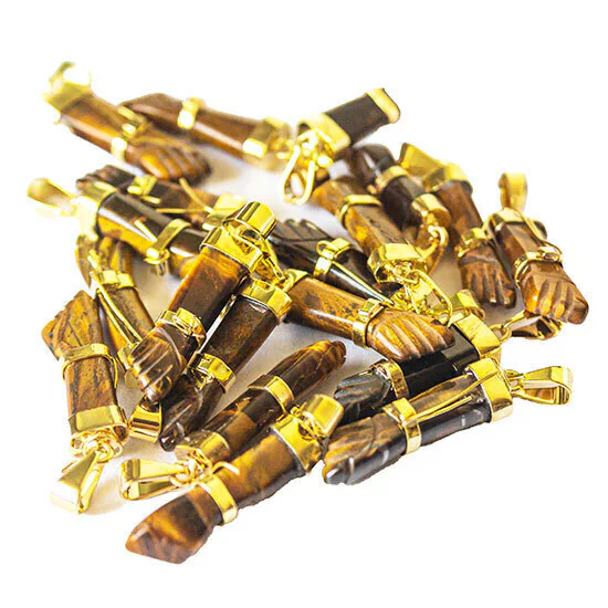 Figa Mini Pingente Montagem Dourada Amuleto da sorte Pedra Olho de tigre , lapidação totalmente artesanal com polimento por vibração a montagem é feita emvolto da peça com Lapidação suave não machuca quando estiver usando