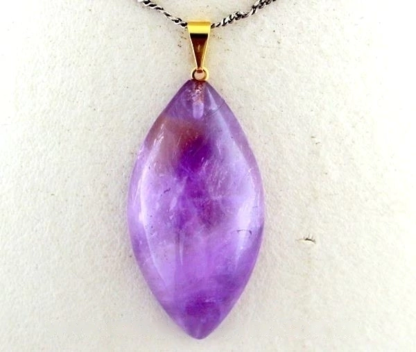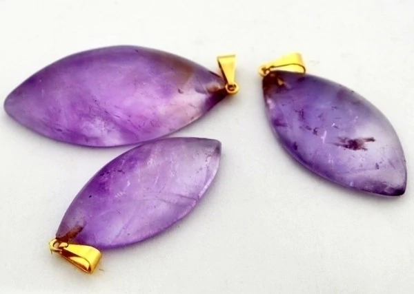 Pingente Navete Folha Ametista Lapidação manual, mineral de garimpo pedra natural Montagem Furado Pino + Perinha para colar