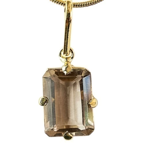 O quartzo fumê em formato baguette é o destaque deste colar. Adicione um toque de mistério e elegância ao seu look com este acessório.