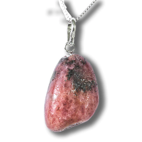 A rodonita é um silicato de manganês que exibe uma cor rosa a vermelha, frequentemente com veios pretos de óxidos de manganês que formam padrões únicos e intrigantes. Quando rolada, a rodonita adquire uma superfície suave e polida, que realça suas cores vibrantes e padrões característicos. Ela possui uma dureza de 5,5 a 6 na escala de Mohs, o que a torna suficientemente resistente para diversas aplicações, embora seja relativamente fácil de trabalhar para artesãos. A translucidez da rodonita pode variar, e algumas peças podem apresentar um brilho vítreo a perolado.