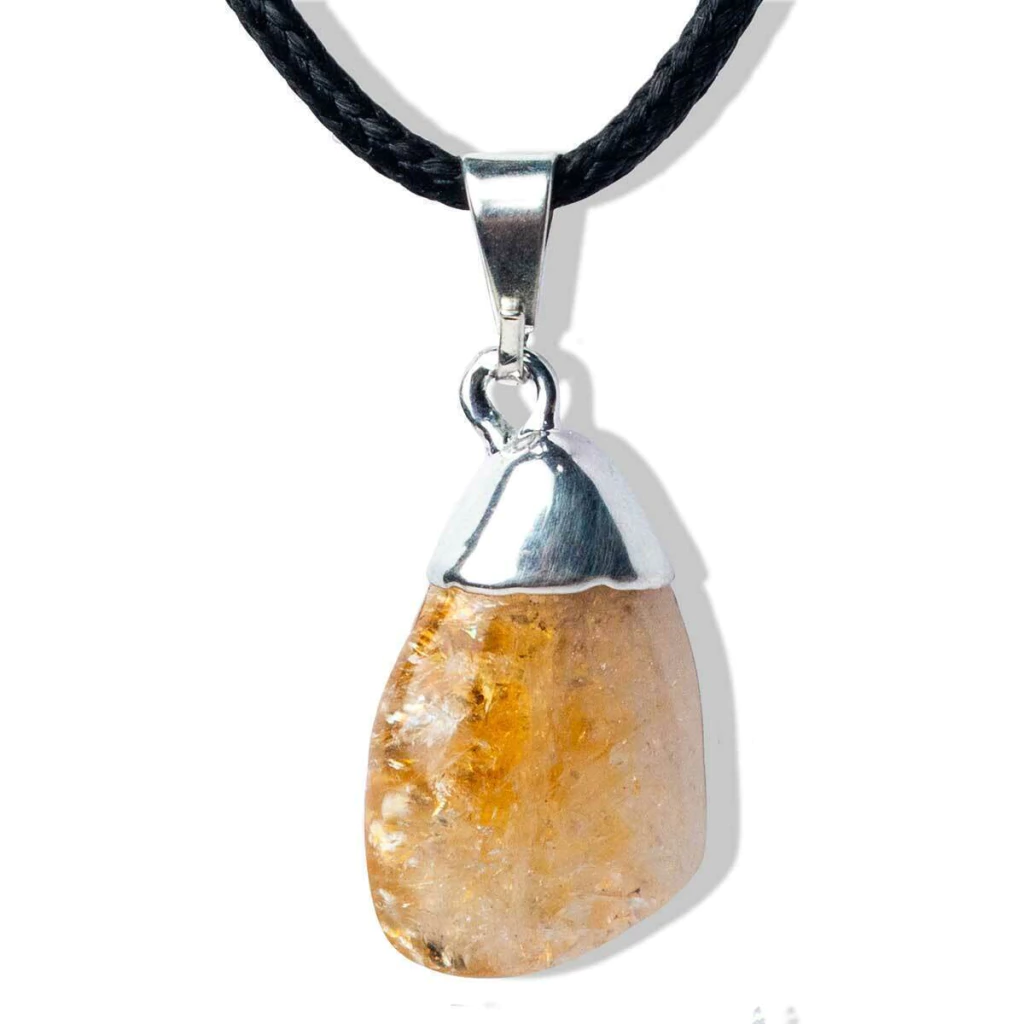 Colar pedra de Citrino envolto prateado. Acessório elegante e sofisticado com pedra naturalmente bela de tom amarelo escuro. Montagem manual.