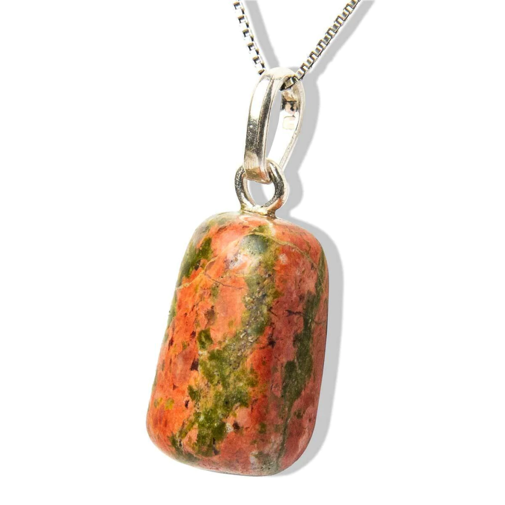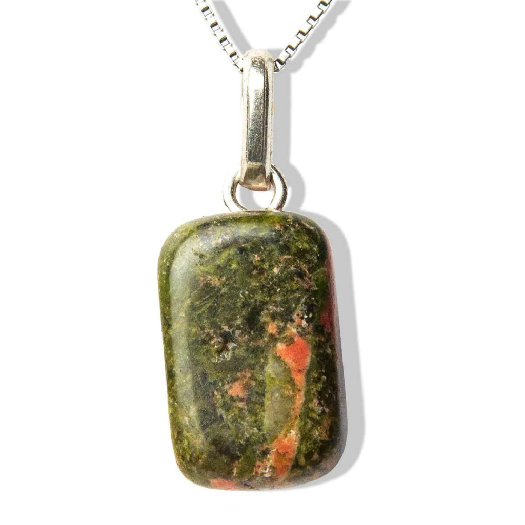 Pingente Pedrinha Unakita Natural Montagem na Prata 950 ( PRATA DE LEI) com Pino e Perinha na Pedra, origem garimpo com lapidação e montagem manual