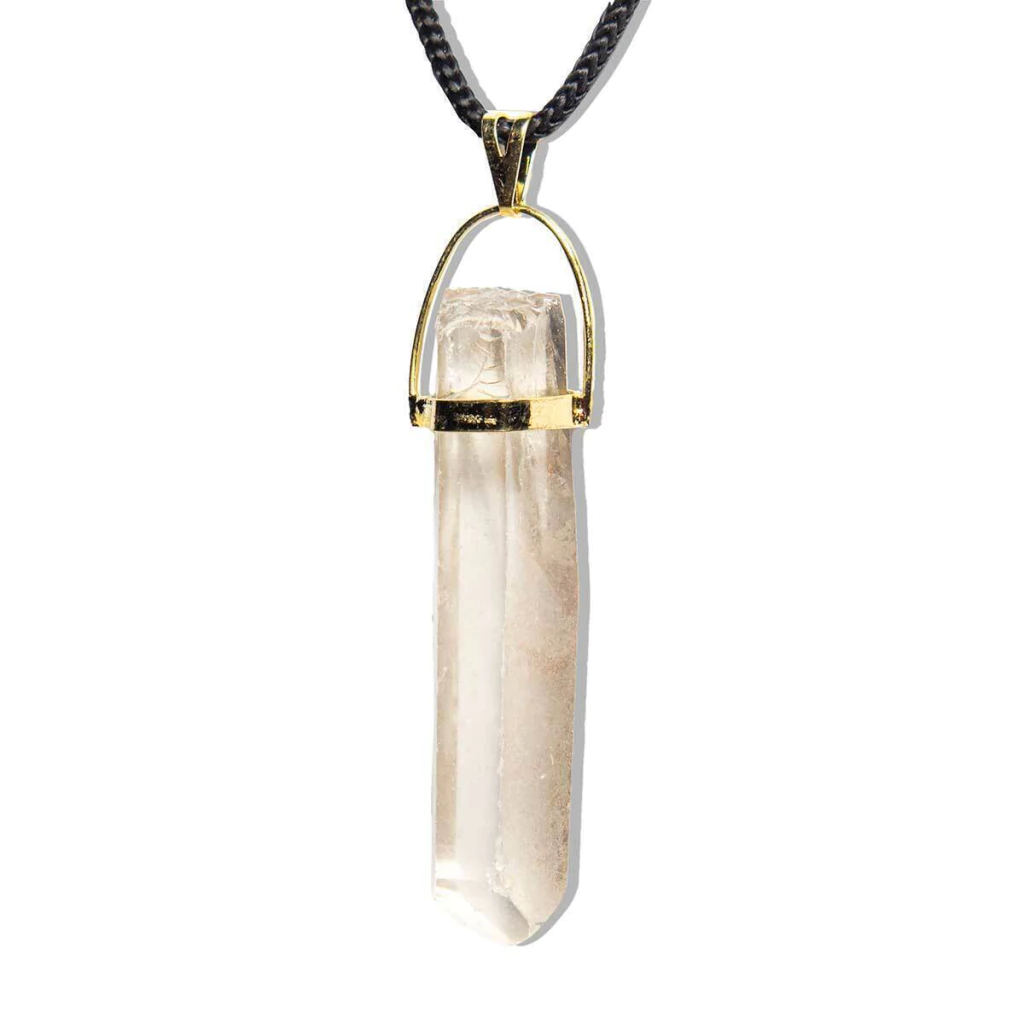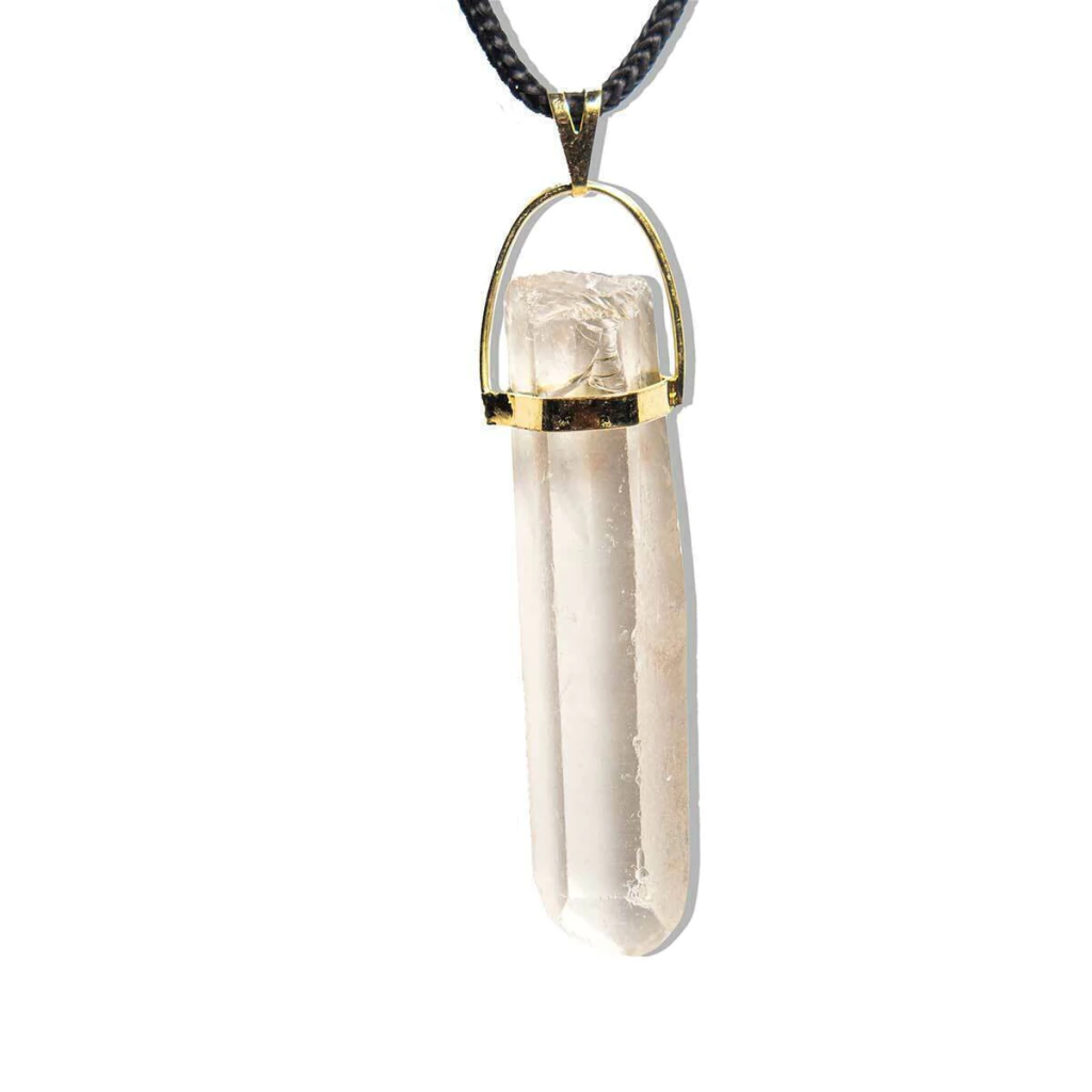 Pingente Lemuria ponta bruta de Cristal pedra de garimpo montagem envolto com presilha Dourado. Ideal para colar e pulseiras ja vai montado.