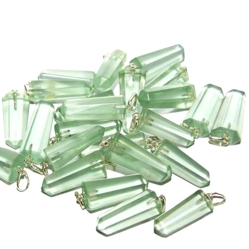 Pingente PONTINHA Pedra Obsidiana Verde com lapidação artesanal montado na Prata 950 com pino e presilha, ideal para colar e pulseiras, já vai montado