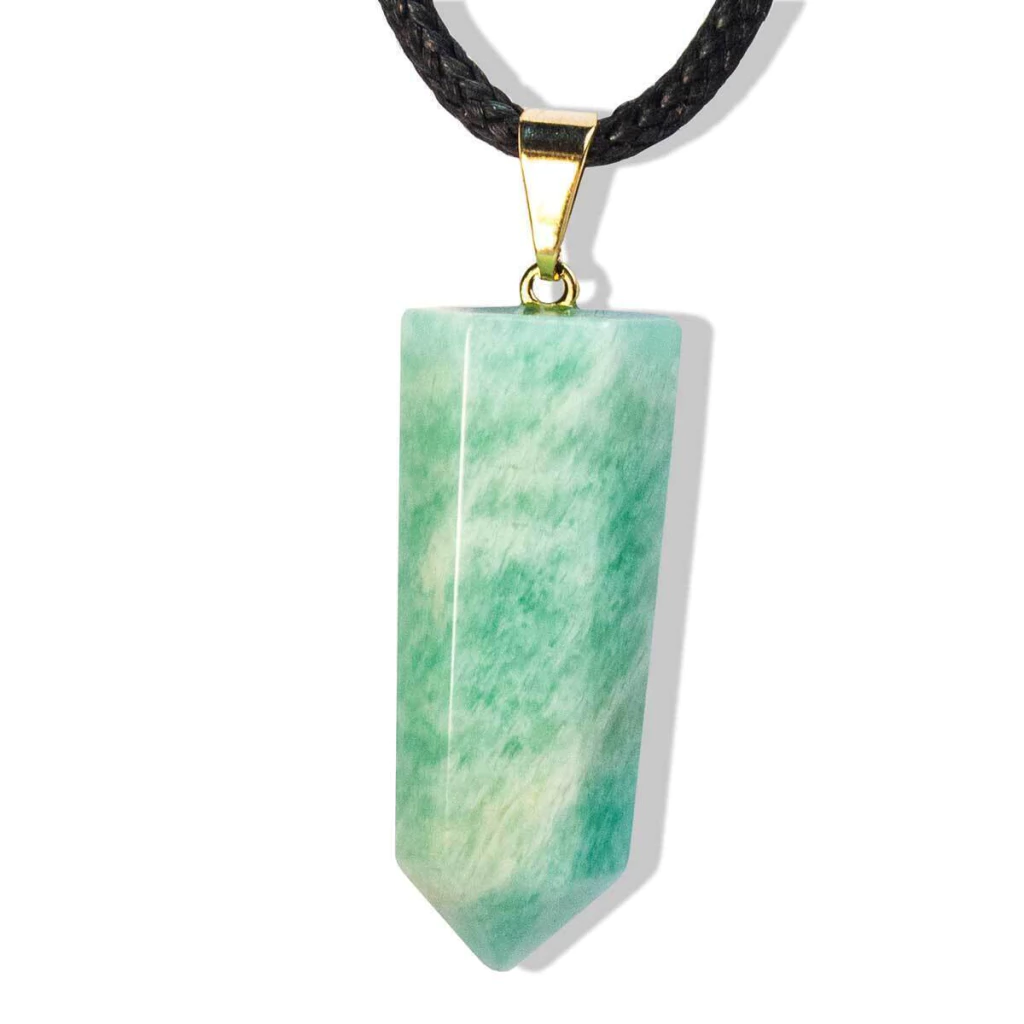 Pingente PONTA de Amazonita pedra de garimpo com lapidação artesanal montado no dourado , ideal para colar e pulseiras, ja vai montado.