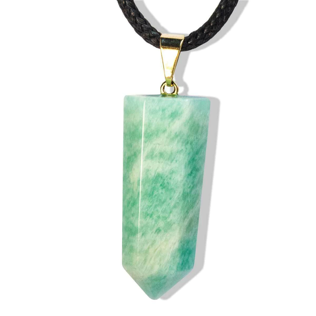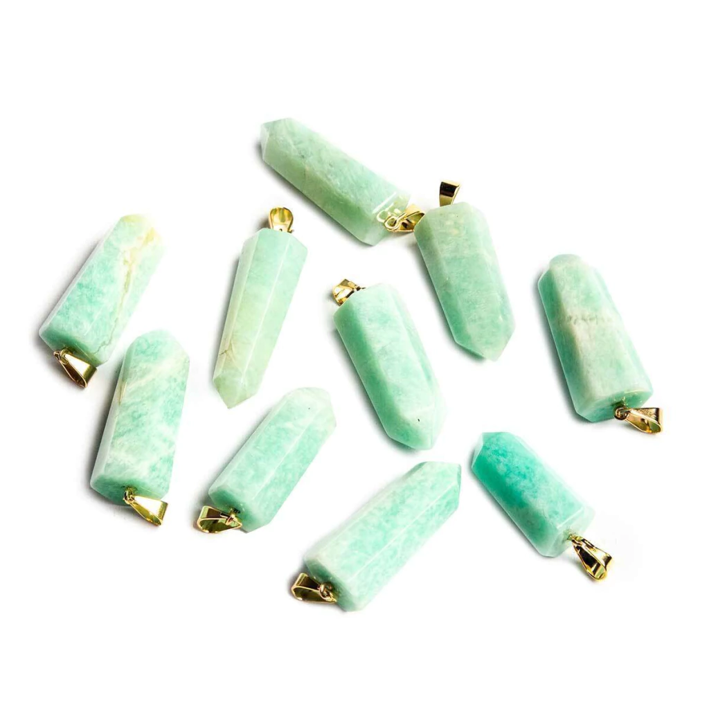 Pingente PONTA de Amazonita pedra de garimpo com lapidação artesanal montado no dourado , ideal para colar e pulseiras, ja vai montado.