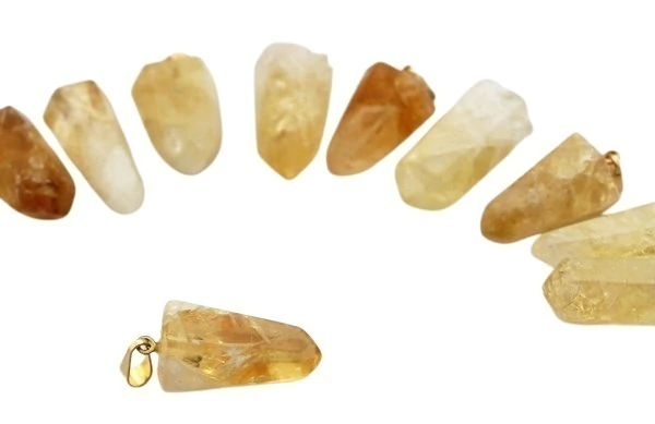 Pingente PONTA de Citrino Bombardeado pedra de garimpo com lapidação artesanal montado no dourado , ideal para colar e pulseiras, ja vai montado.