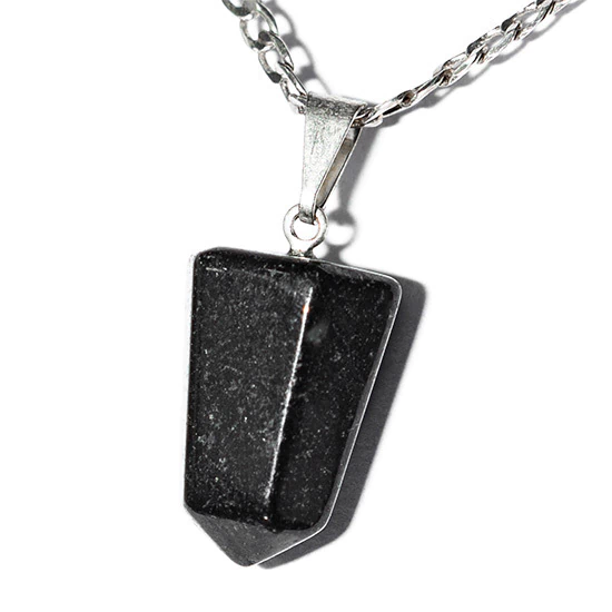 Pingente Pontinha Pedra Quartzo Preto Presilha e Pino Prateado, Pontinha Sextavada Pedra Cristal de garimpo com lapidação artesanal montado com pino e Presilha com Banho Prateado, ideal para colar e pulseiras, ja vai montado.
