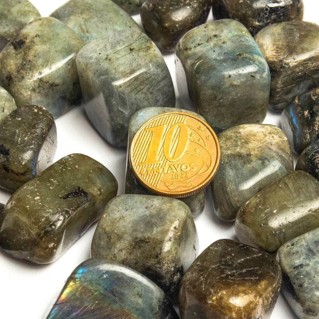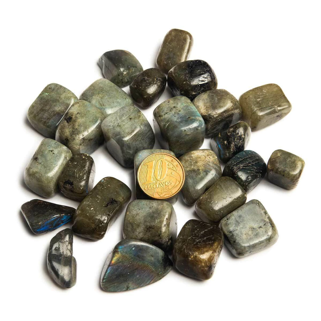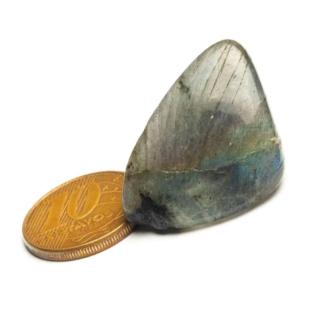 A Labradorita, também conhecida como Spectrolite, é uma pedra natural do grupo dos feldspatos, famosa por seu brilho iridescente que reflete tons metálicos em azul, verde, dourado e laranja, como um arco-íris sob a luz. Cada unidade é cuidadosamente selecionada e lapidada no formato rolado, ideal para uso terapêutico, decoração ou coleção.