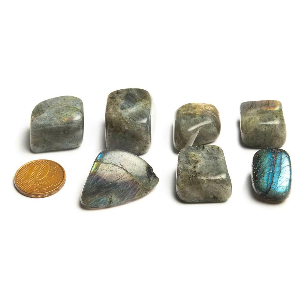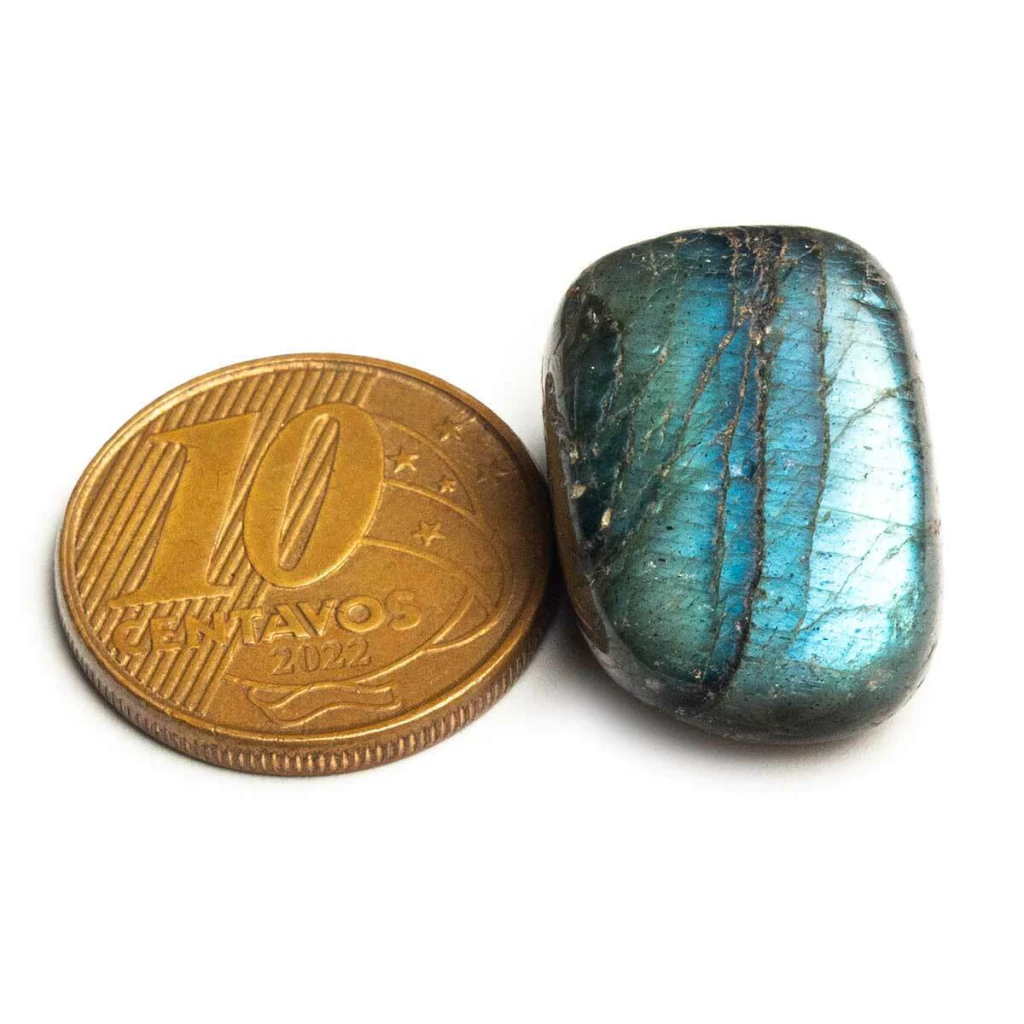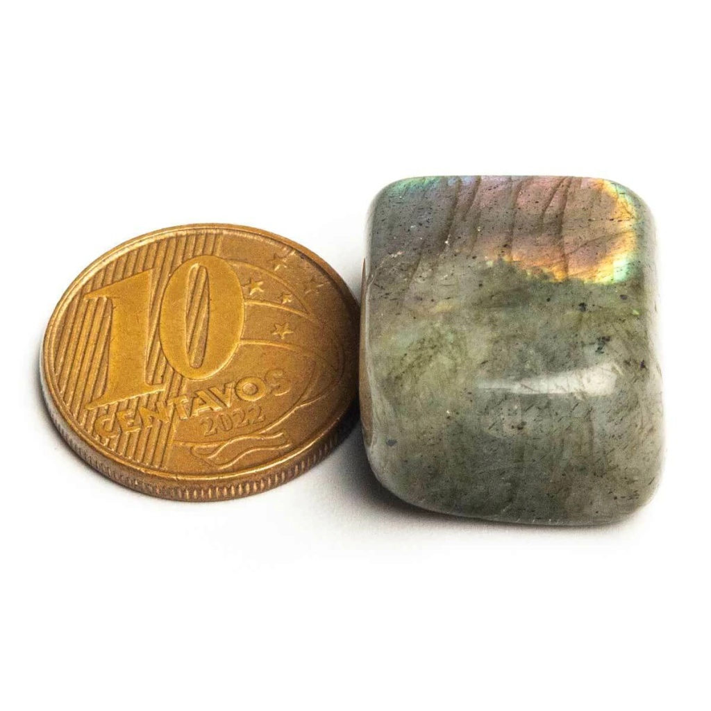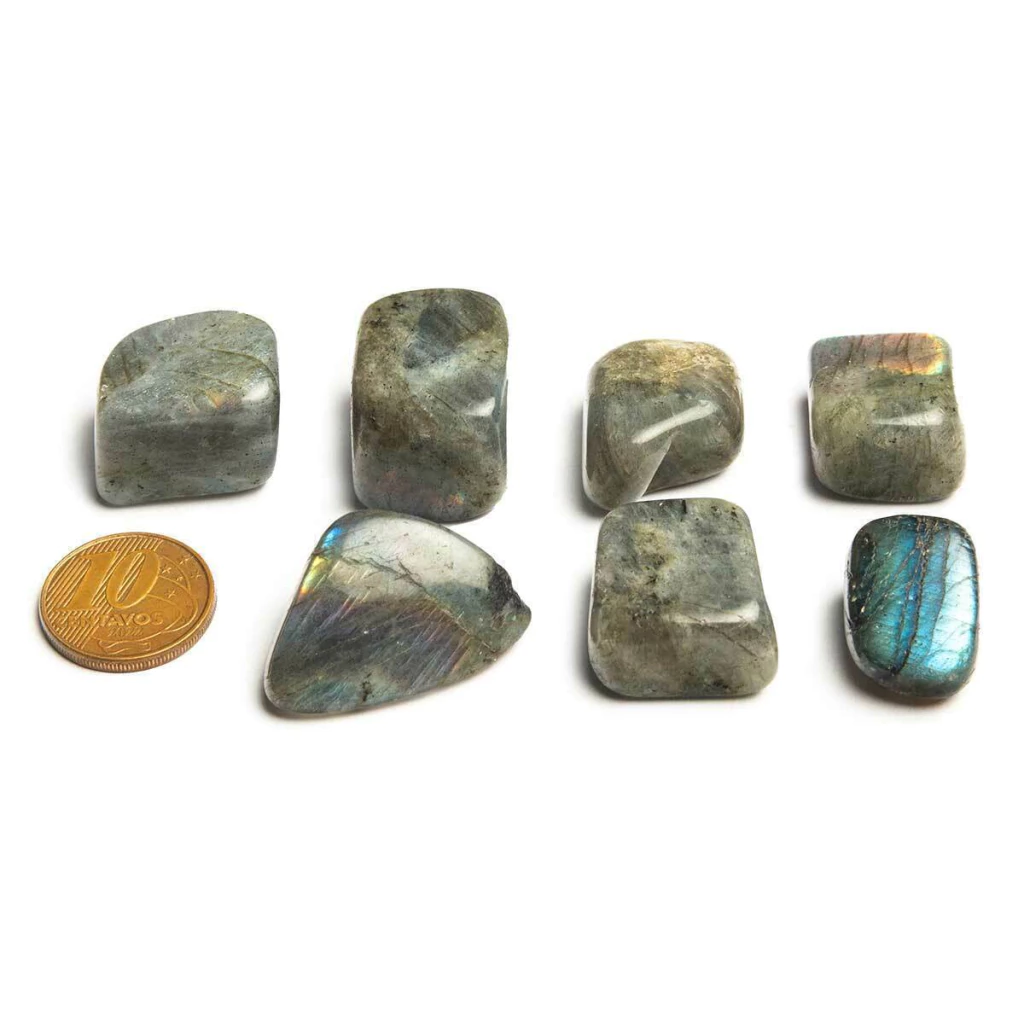 A Labradorita, também conhecida como Spectrolite, é uma pedra natural do grupo dos feldspatos, famosa por seu brilho iridescente que reflete tons metálicos em azul, verde, dourado e laranja, como um arco-íris sob a luz. Cada unidade é cuidadosamente selecionada e lapidada no formato rolado, ideal para uso terapêutico, decoração ou coleção.