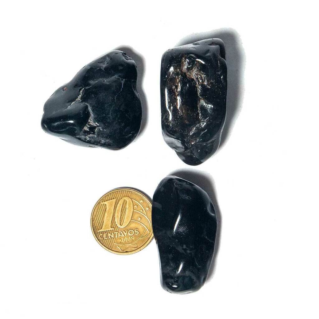 Adquira uma unidade de Ônix Preto Rolado, uma pedra natural de alta qualidade, com brilho intenso, lapidação cuidadosa e excelente densidade. Este mineral autêntico é cuidadosamente selecionado e proveniente da Bahia, Brasil.