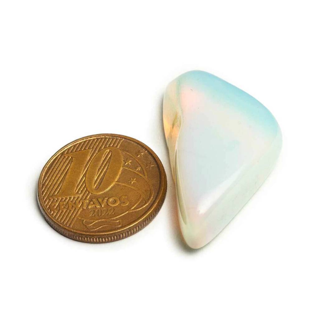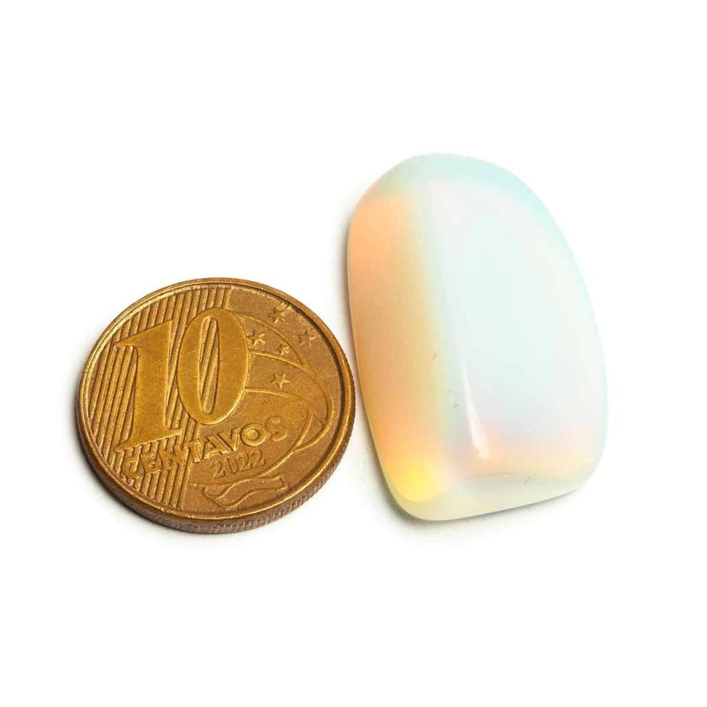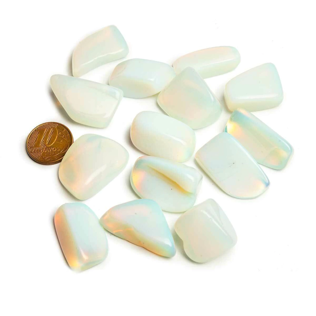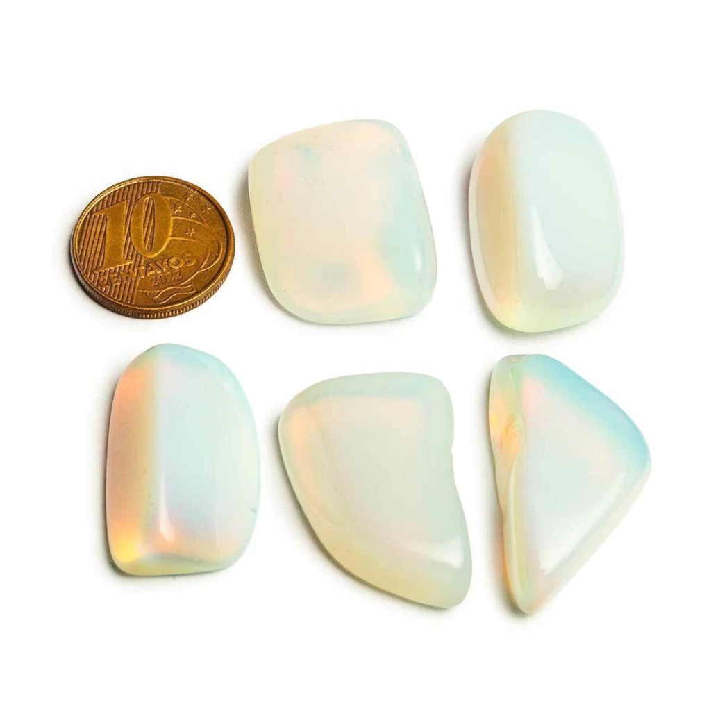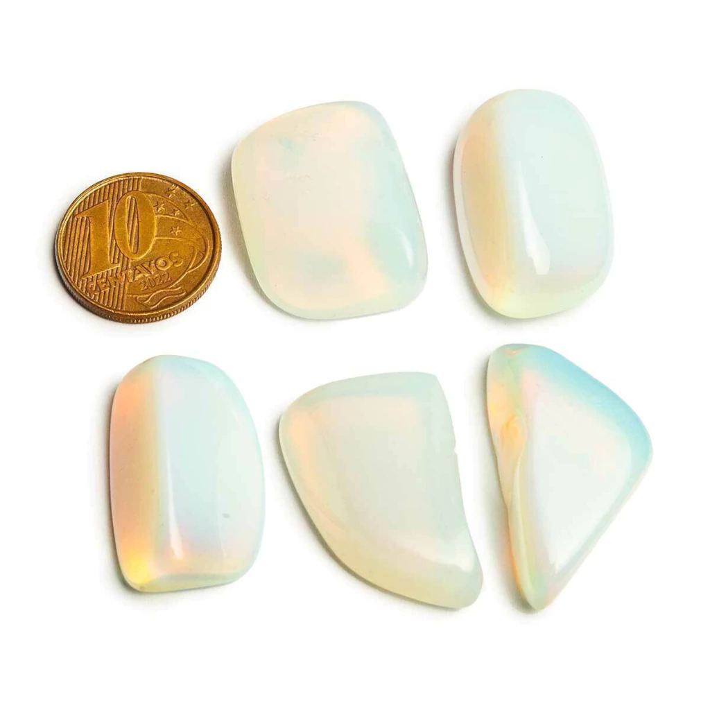 Observação: Por se tratar de um mineral natural (ou pedra sintética de laboratório, no caso da opalina), cada unidade é única e pode apresentar variações de tonalidade e formato.