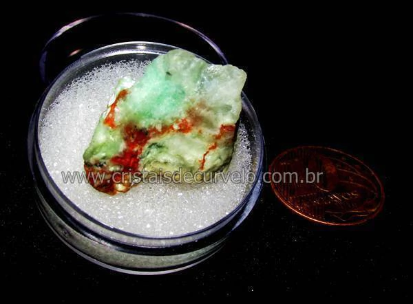 Fragmento de Crisoprasio Bruto ou Quartzo Cripto da Familia da calcedonia Natural, Pedra No Estojo ideal para coleção no esoterismo Rocha da forma que saiu do garimpo, mineral natural com um lindo tom de verde
