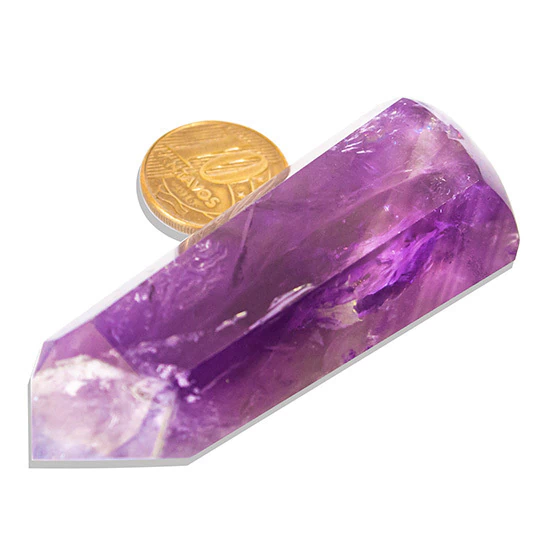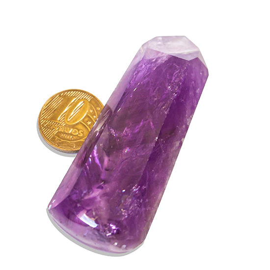 Desintegrador Ametista Base abaulado sextavado em pedra Natural, facetas retilineas, ponta centralizada, para uso na terapia Pranica