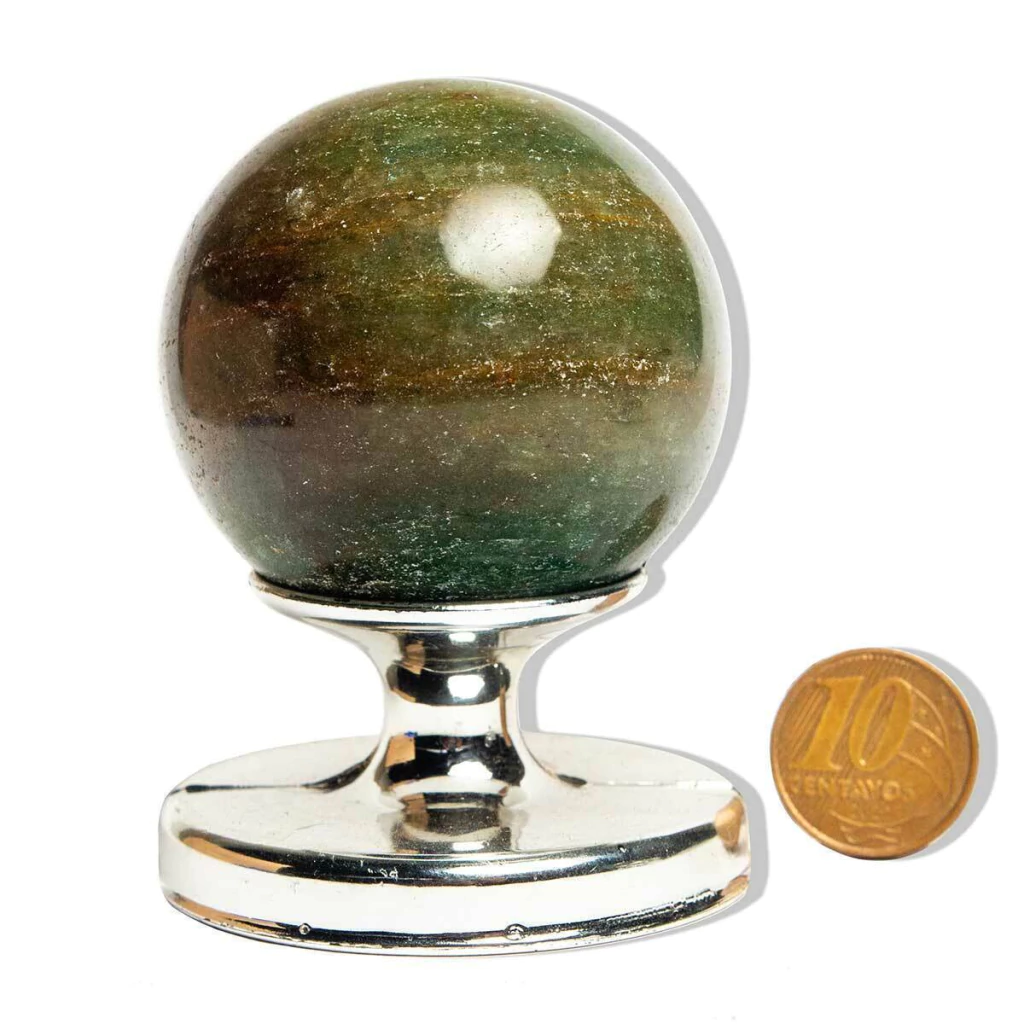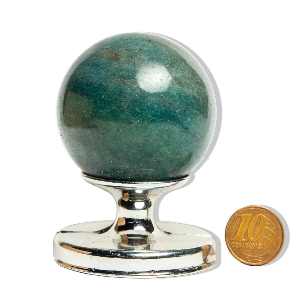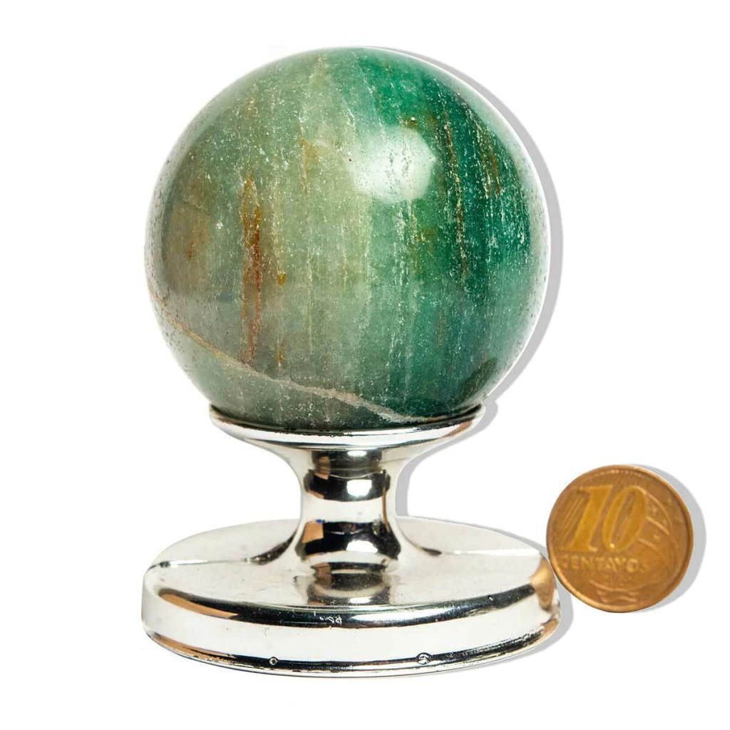 Cada esfera de Aventurina Verde carrega sua própria beleza singular. É comum encontrar: