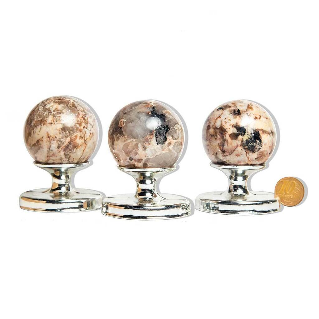 Cada esfera de feldspato é uma peça única da natureza. É comum observar: