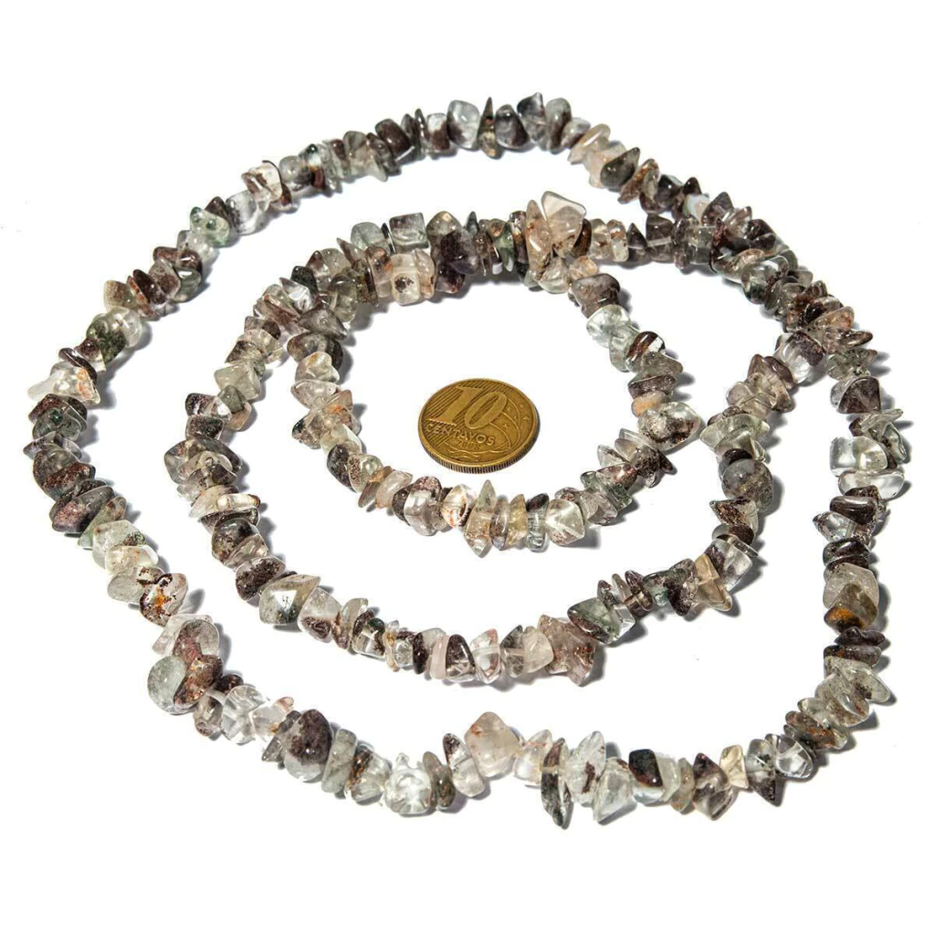 Leve mistério e sofisticação às suas criações com o charme único da Lodolita Natural, também conhecida como Cristal Jardim. Este fio de aproximadamente 90 cm é composto por cascalhos rolados de alta qualidade, com furo a laser, perfeitos para montagem de biojoias, colares, pulseiras artesanais e peças com significado espiritual.