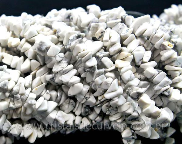 Fio Howlita Branca Cascalho Rolado com furos Laser, cascalho Natural roladas são tipos pedras formadas em maquinas de rola e polidas, tipo cascalho rolado