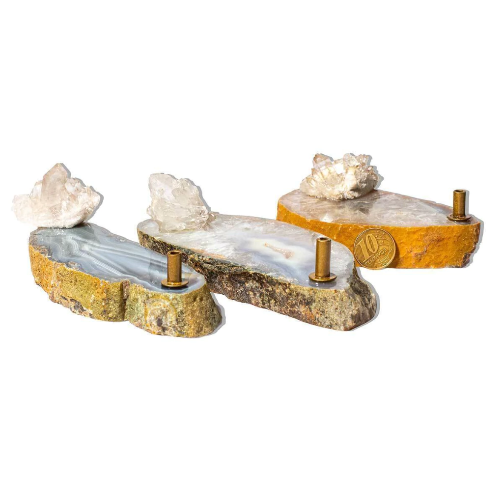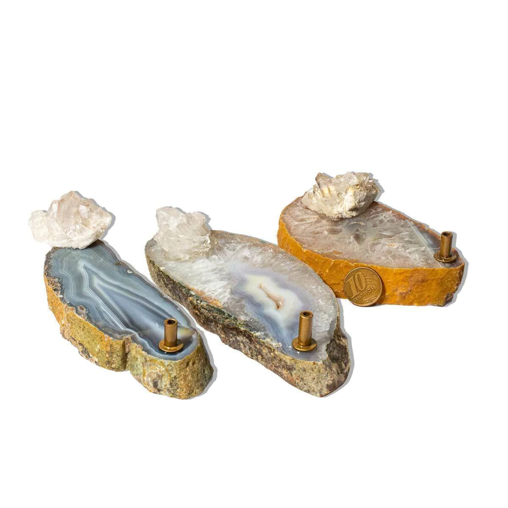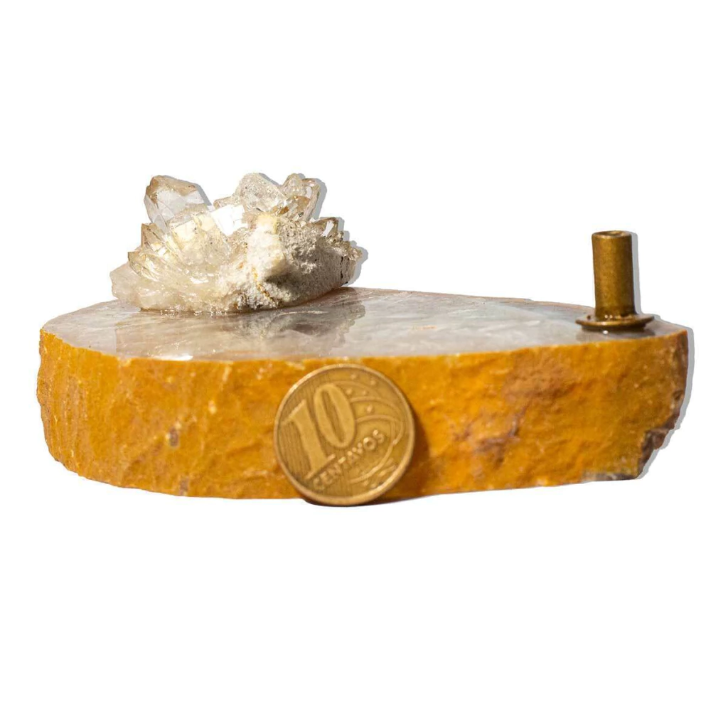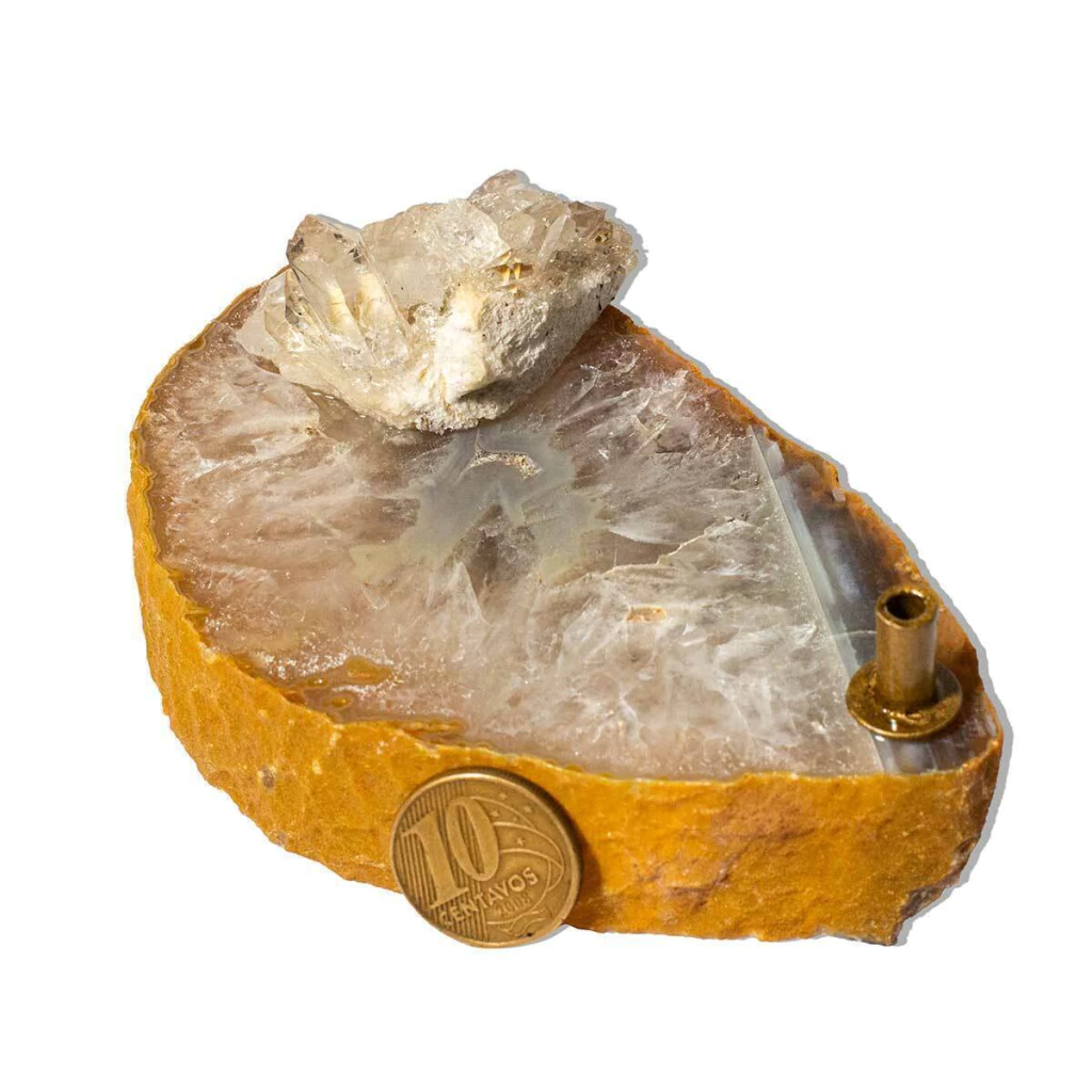 Leve equilíbrio, beleza e boas energias para seu espaço com este incrível Incensário feito em Chapa de Ágata Natural com Drusa de Cristal. Uma peça sofisticada e cheia de significado, com suporte para encaixe de incenso, unindo a beleza da ágata polida com o brilho natural da drusa de cristal.