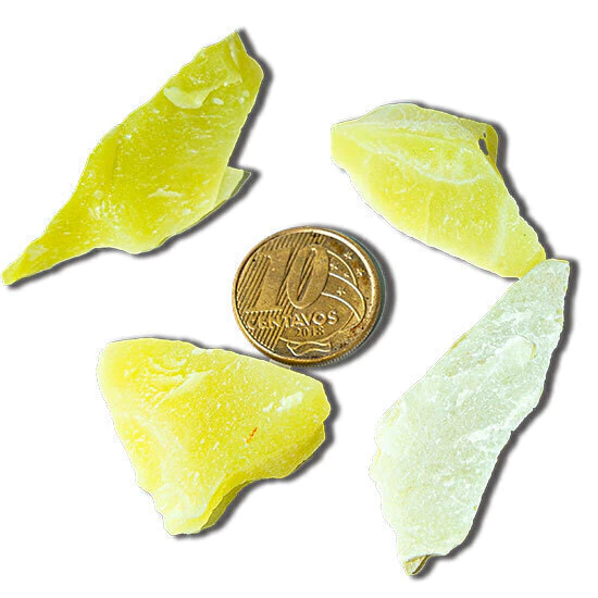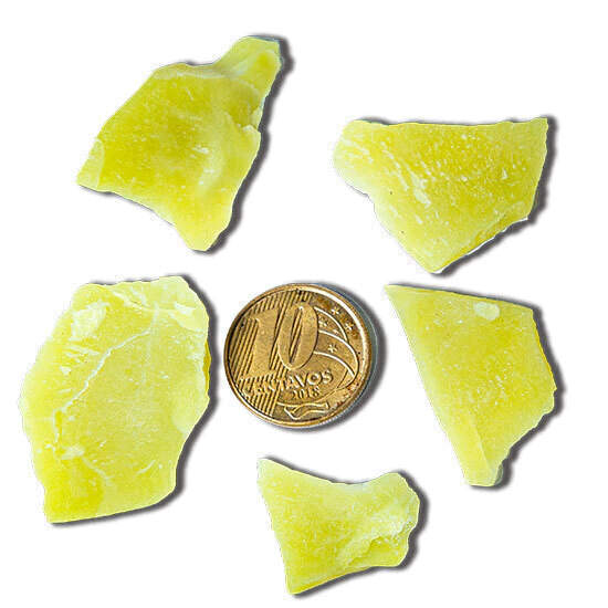 Kit com 05 frangmentos de Calcedônia Verde bruto natural Ideal para estudos geologicos ou colecionador Kit com tamanho variado de pedras